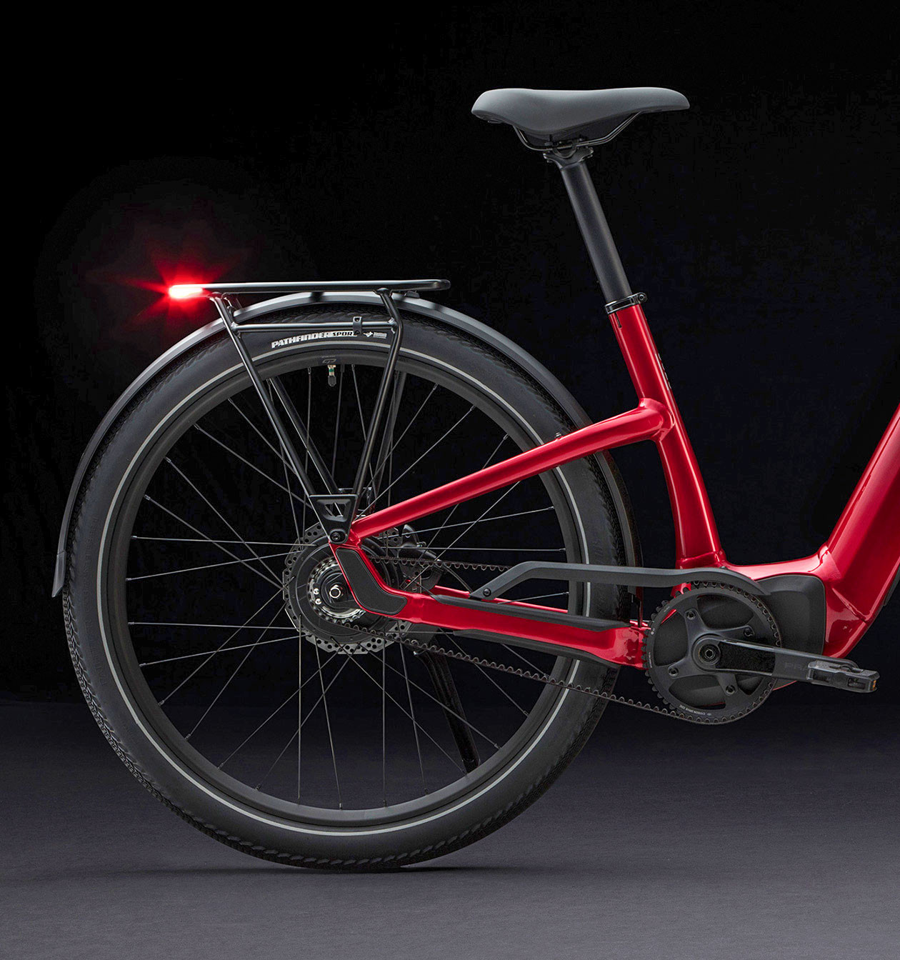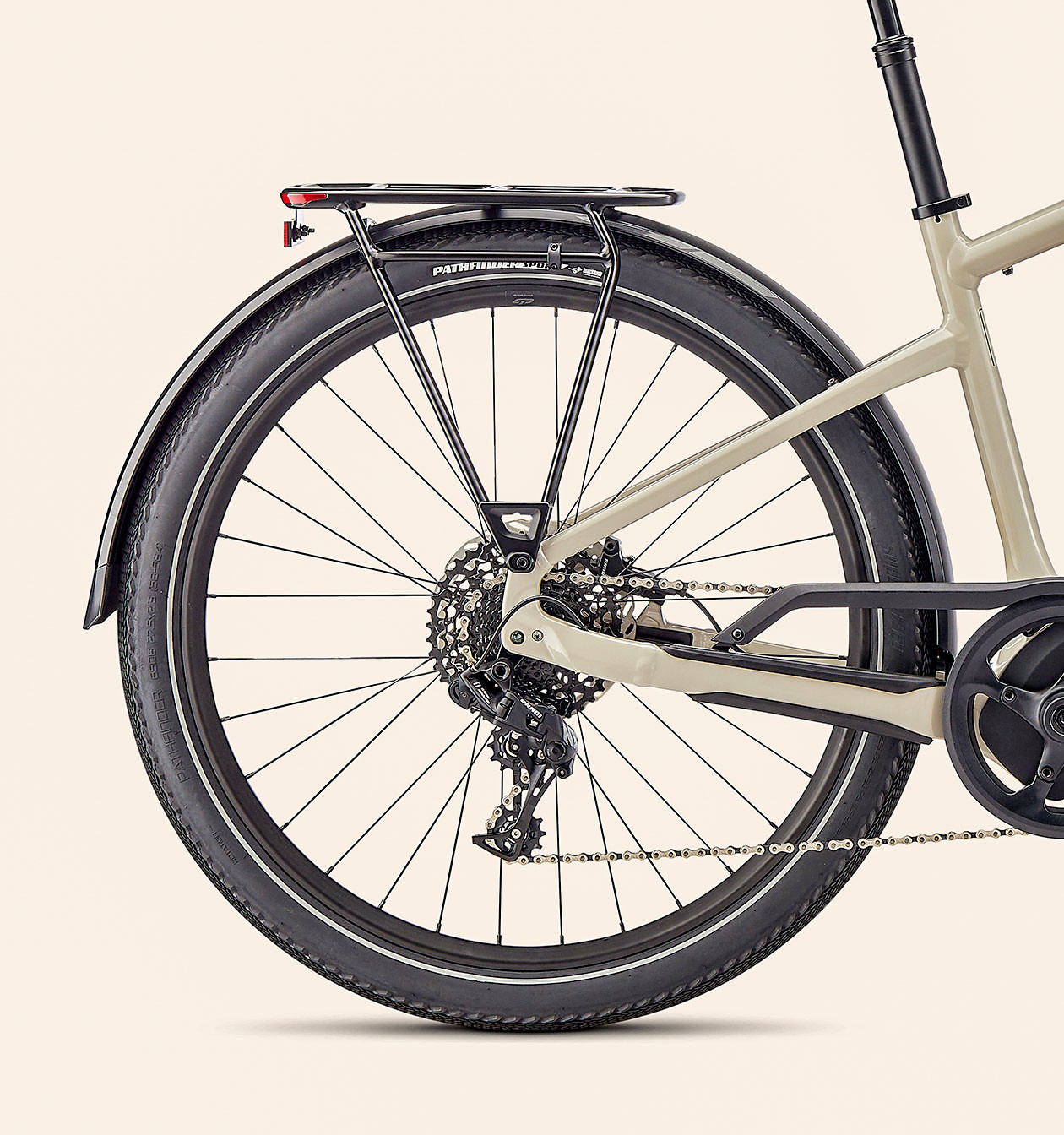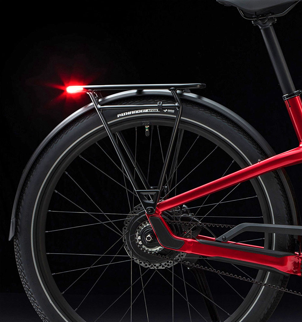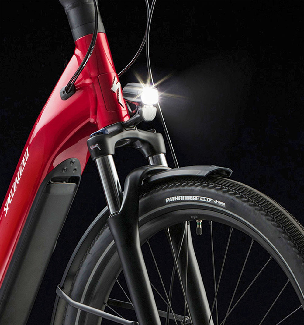 The simple SRAM 11-speed derailleur system uses a single ring in front and super-wide-range gears in the back to deliver all of the gears you need to conquer any hill—without overcomplicating things with a front shifter too. The tried-and-true derailleur system offers the most efficient drivetrain to get the most out of your battery power.